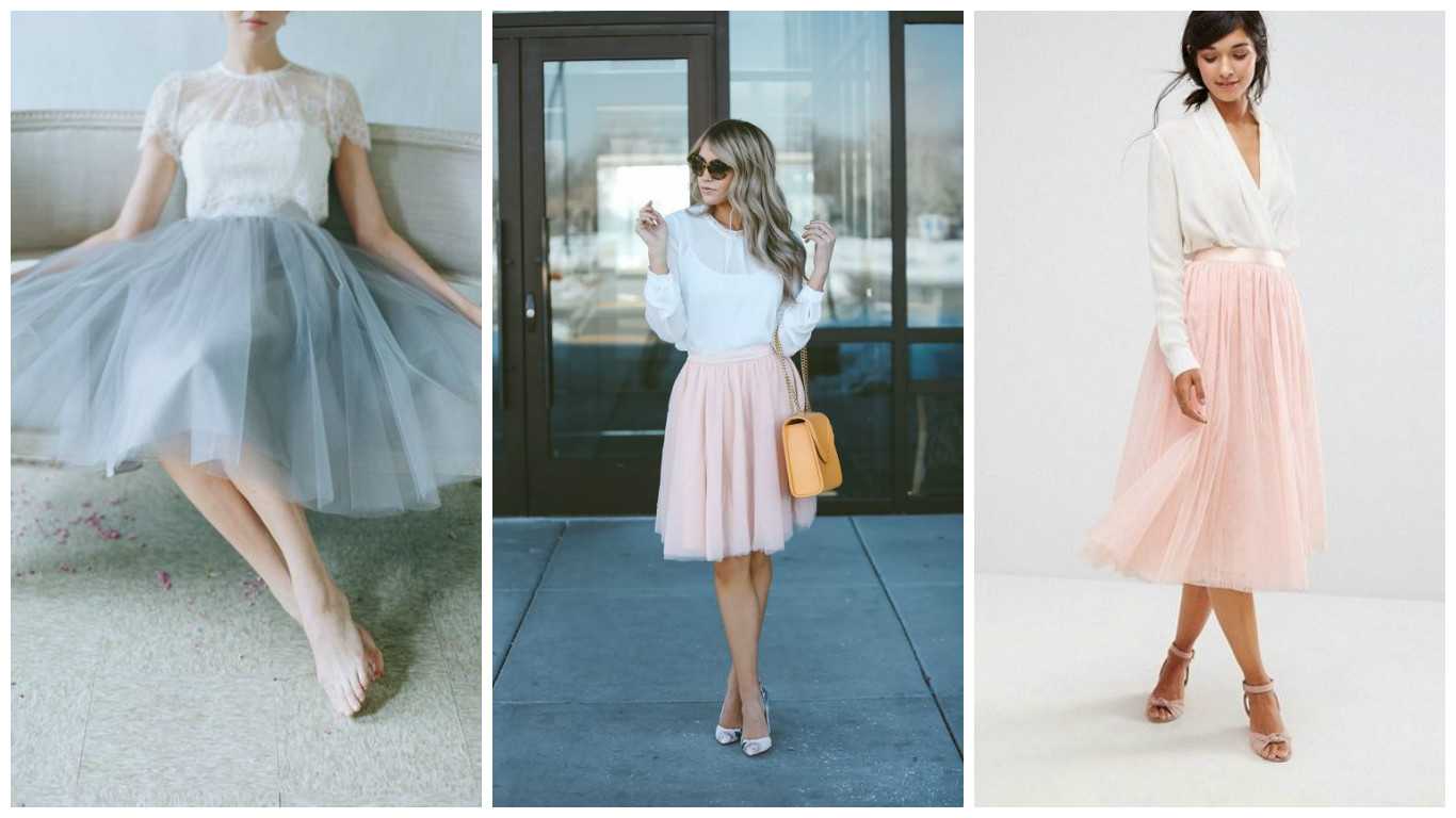 - Пышная юбочка превращает любую девушку в принцессу (или королеву, если хотите). Если вы дополните ее белым свитером и кроссовками, то сможете отправиться в таком модном образе на прогулку. Для вечернего выхода приберегите сочетание с кружевным топом или модной блузкой.