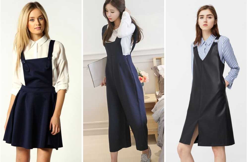 Носить его можно поверх футболки (однотонной или с принтом в виде, например, мультяшки Микки Мауса), легкой полупрозрачной блузки, полосатого лонгслива, джемпера или водолазки различных цветов. Плюс этого сарафана в том, что его можно носить с колготками и сапогами, а, значит, он подходит не только для теплой весны и жаркого лета.