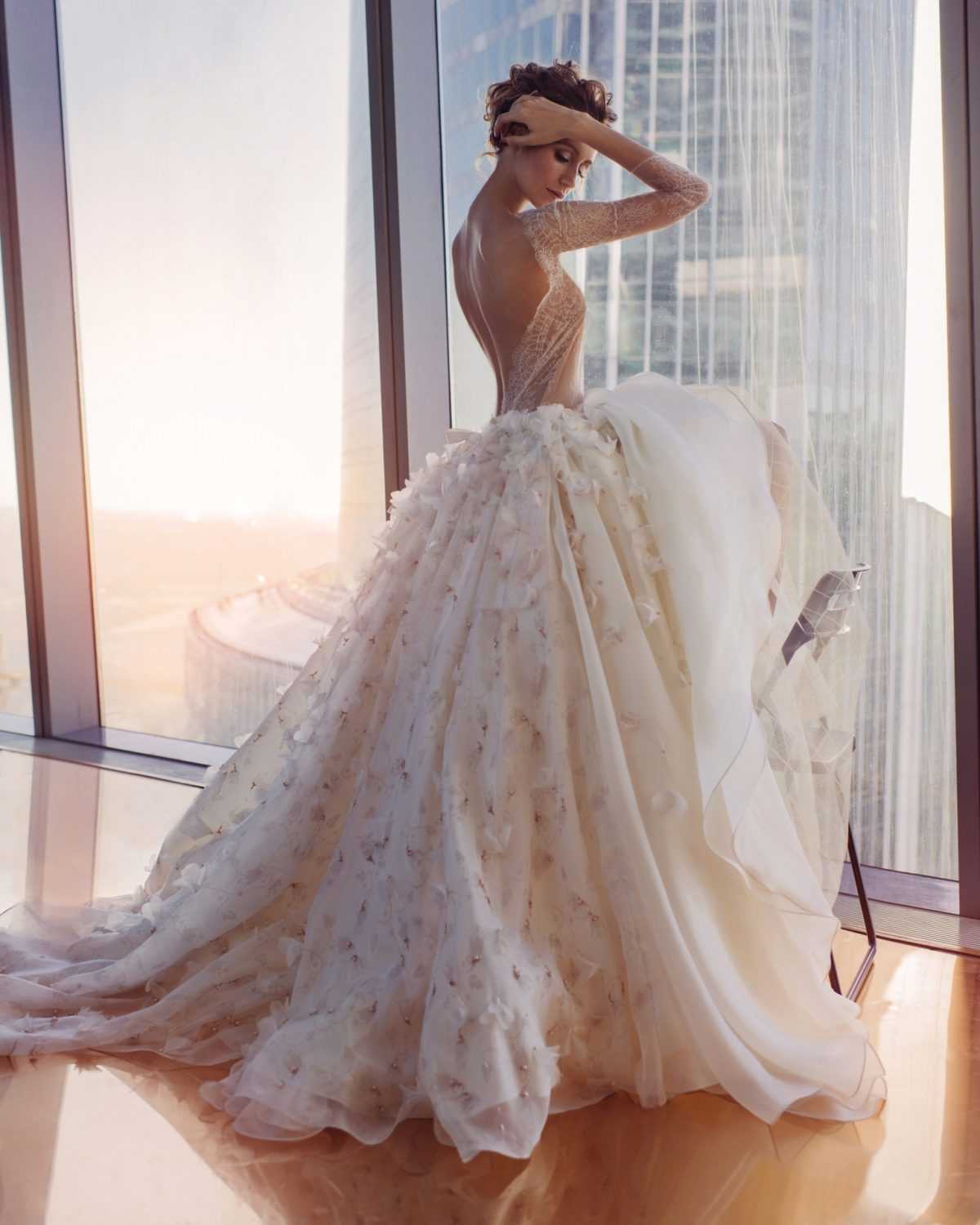 Именитые дизайнеры предлагают модницам большой выбор одеяний. Довольно часто вырез сочетается со складками, камнями, бантами. Оригинально смотрятся платья с вырезами на лопатках и отдельно на талии. Вырезы разной формы зрительно стройнят силуэт и могут с легкостью украсить свадебное одеяние.