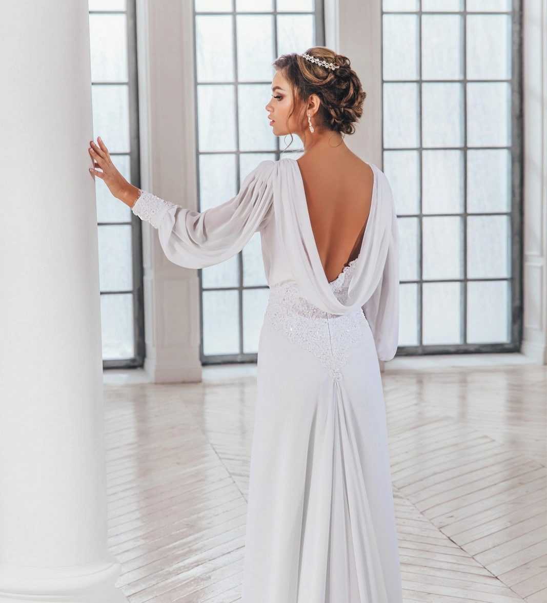 Это невероятно красивые платья с открытой спиной, которые идеально подойдут для проводимых в прохладную погоду мероприятий. За счет наличия рукава модели даже с самым глубоким вырезом не будут смотреться вульгарно. Предпочтение при этом рекомендуется отдавать однотонным изделиям. Например, отличным решение станет черное платьице.