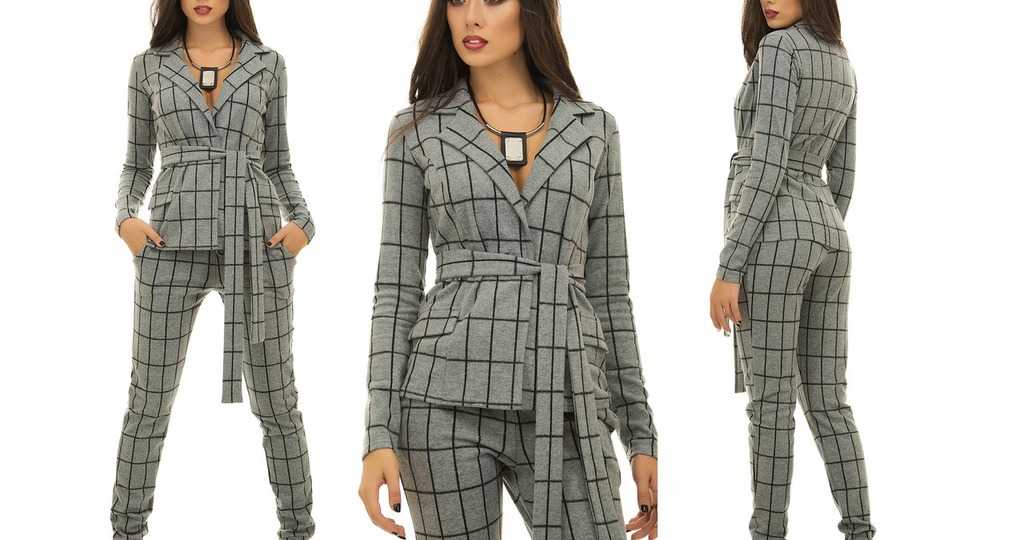 Оптимальным вариантом для офисного варианта является сочетание черных брюк в клетку с пиджаком такого же принта. Костюм подчеркнет индивидуальность бизнес-леди и придаст образу изысканности.