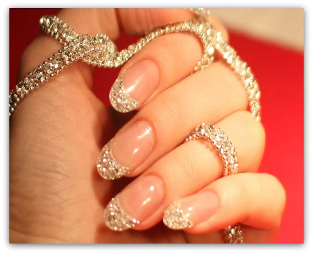 - Маникюр с блестками либо стразами рекомендуется делать на длинные ногти.