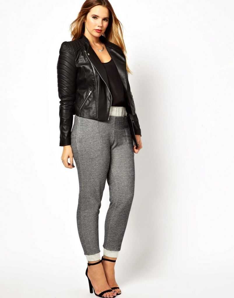 Кожаные куртки отлично подходят пышным девушкам. Данная модель имеет четкие линии, стойку-воротник и прямой силуэт — все это хорошо стройнит женскую фигуру. Обычно косухи носят нараспашку поверх платья или блузы. Ветровки также являются одеждой спортивного стиля для девушек. Небольшой воротник, косые карманы, шнуровка в зоне талии — отличительные особенности изделия.