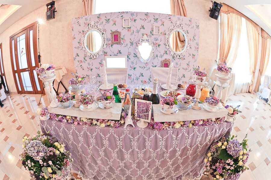 В общем декоре свадьбы должна чувствоваться деревенская простота и французский шик. Пространство следует наполнить старинными вещами, которые несут на себе отпечаток времени. Для оформления свадьбы в стиле прованс следует подобрать состаренную, слегка потертую мебель, льняные скатерти и салфетки и прочие стилизованные мелочи, напоминающие о неспешном ходе жизни французской провинции – милые подушки с незатейливой вышивкой, кружевные занавески, старинная посуда и пр.