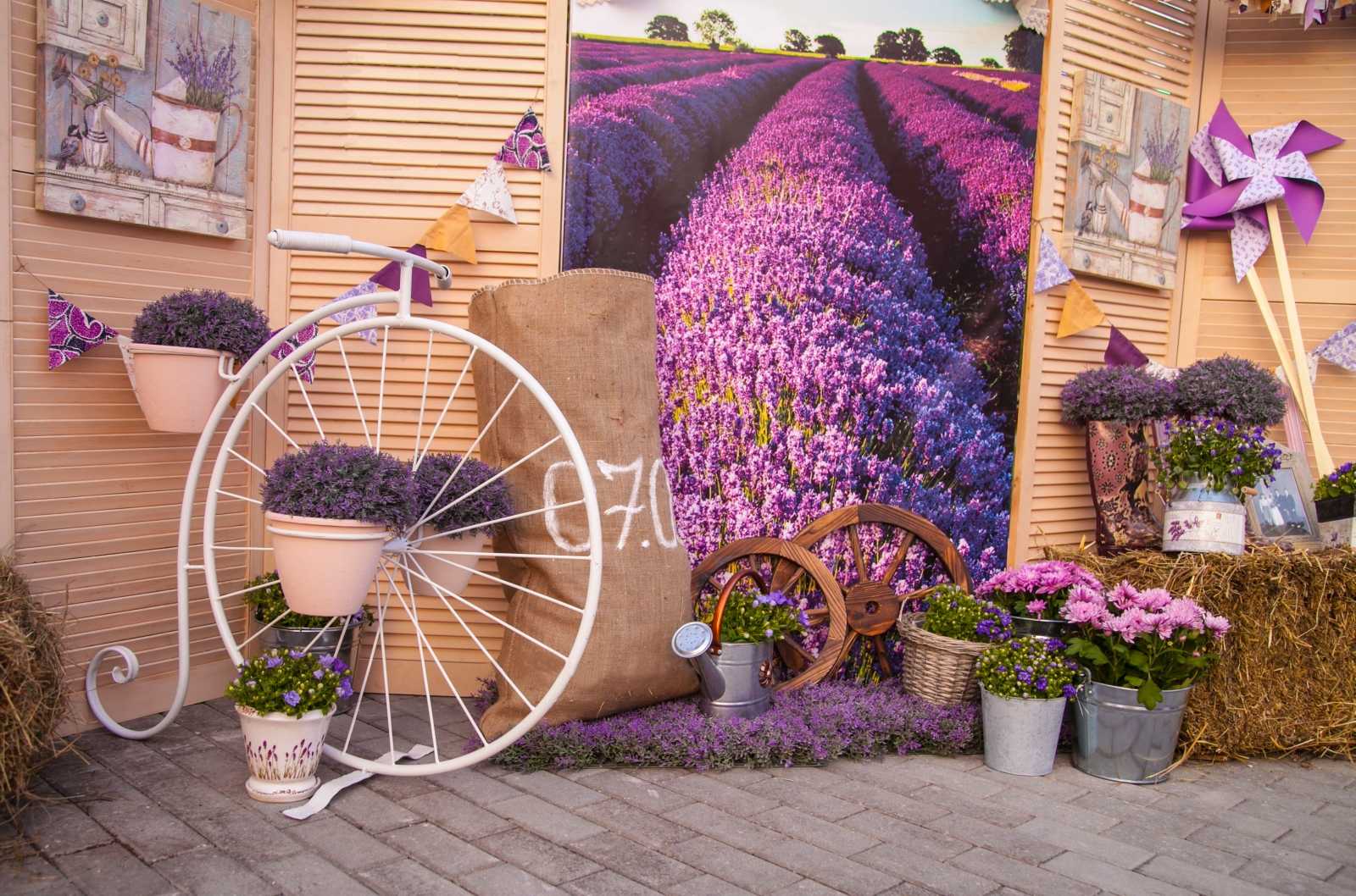 Прованс хоть и отличается простотой, но предполагает наличие множества деталей и акцентов винтажного характера (бутылки вина, сыр, корзинки, вазочки, ленты, фонарики, стилизованные ящики с сеном), легкую небрежность в цветочных композициях, сочетания нежной пастели и единичных ярких включений. Все это можно удачно разместить в фотозоне.