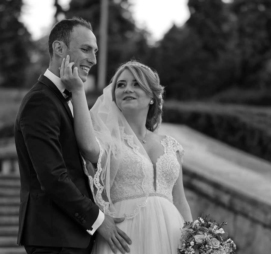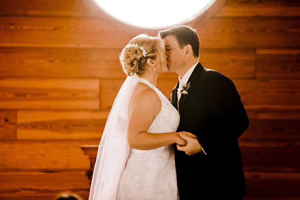 За счет того, что движения ног невесты не видны, создается впечатление, что она плывет по залу. Нежное пышное свадебное платье эффектно смотрится как в жизни, так и на фотографиях.