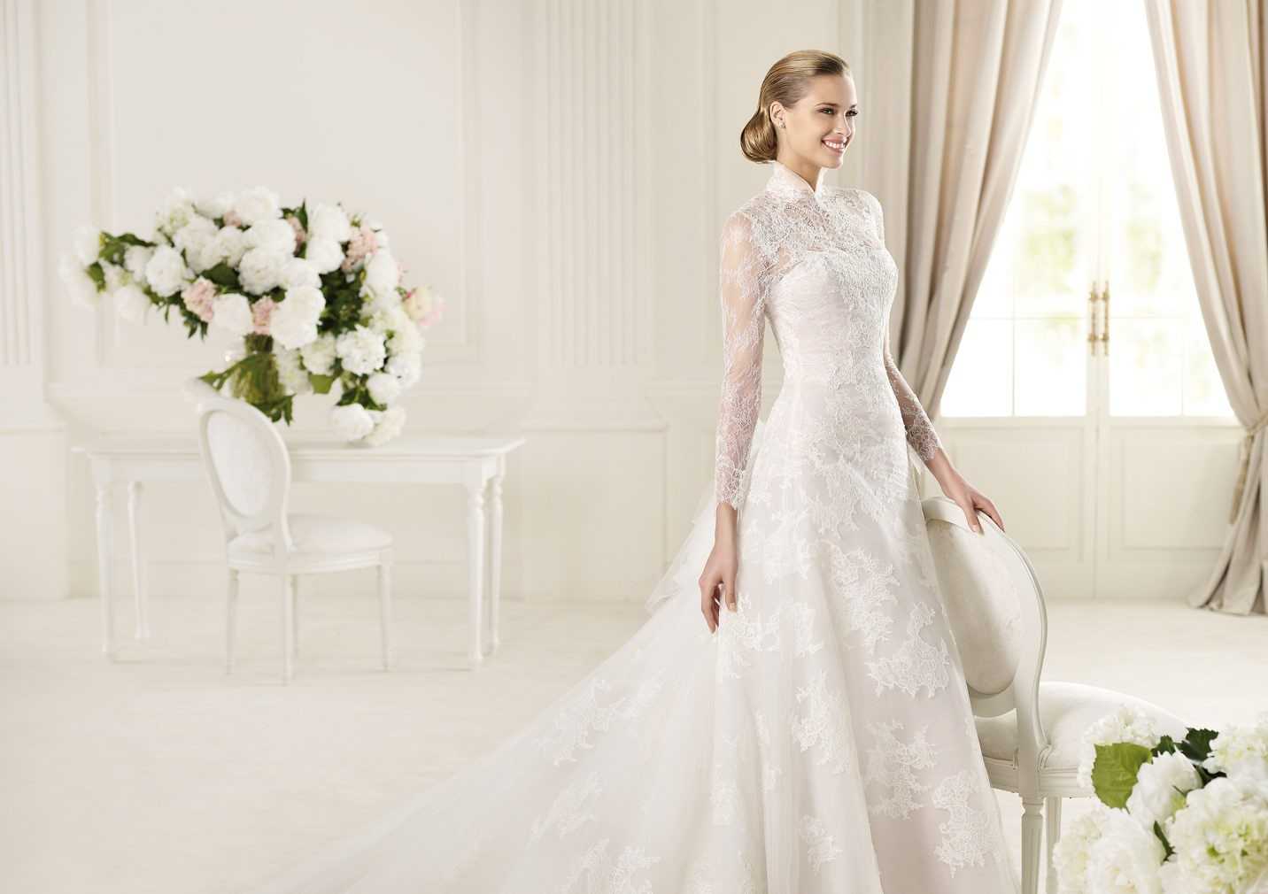 Если массивные плечи не хочется выставлять напоказ, можно сшить шикарные свадебные платья для полных с закрытыми рукавами. Если нет желания прятать руки — рукава возможно сшить прозрачные гипюровые.