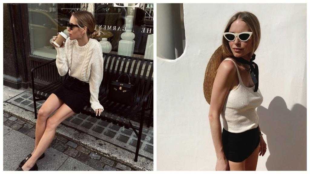 Черно-белая база подходит для любого сезона. Так, летом вы носите трикотажную майку молочного оттенка, а зимой заменяете ее свитером такой же расцветки. Конечно, в холодный сезон на смену мини-юбке приходят более практичные шерстяные брюки.
