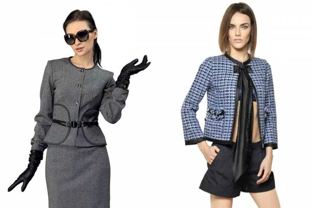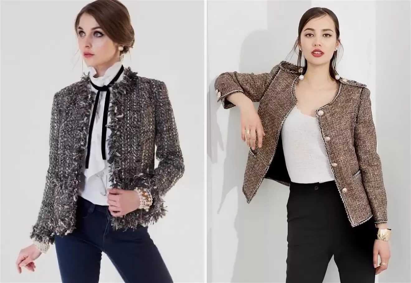 Культовый твидовый пиджак Шанель представляет собой укороченный жакет без лацканов и воротника Женский твидовый пиджак — идеальный вариант для прохладной погоды. Он прекрасно заменит лёгкую куртку или пальто ранней осенью и весной. А в зимний сезон его можно использовать в качестве базовой вещи, к примеру, для ношения в офисе. К тому же его легко комбинировать с другими элементами гардероба и аксессуарами.