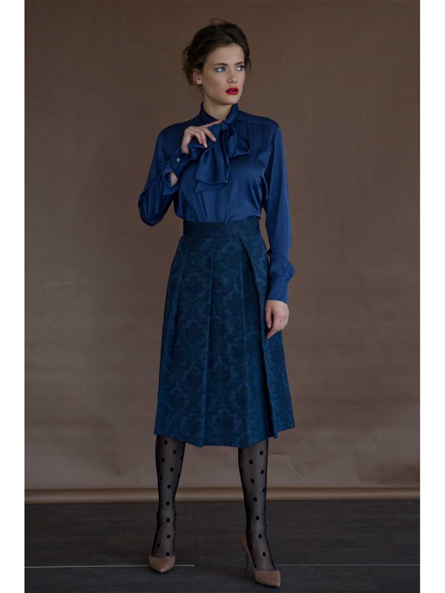 Один из самых гармоничных вариантов верха к такой модели юбочки – это голубая блузка или рубашка. Такая цветовая формула уже стала классикой стильного образа.