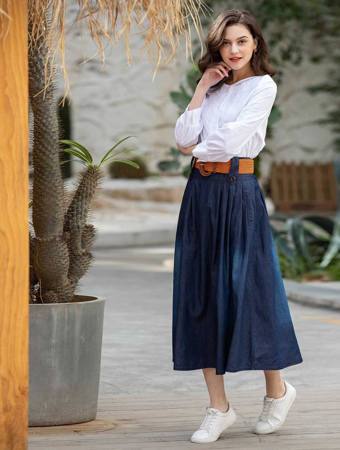 Универсальной признана джинсовая юбка-трапеция. Для лета подходит легкий деним, а для зимы — более плотные фактуры.