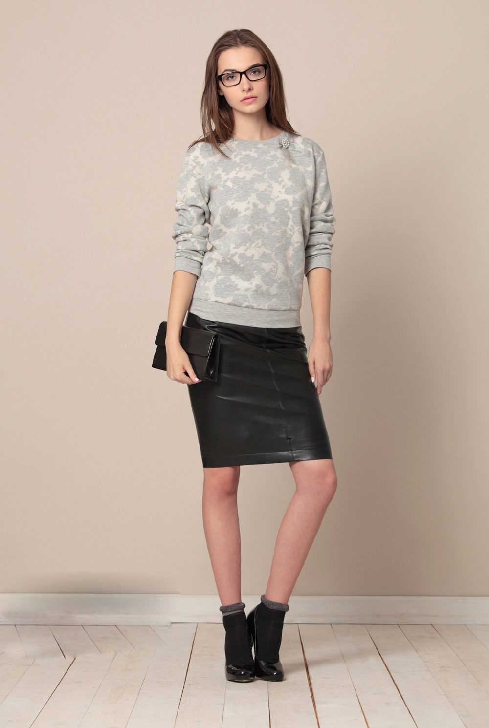 У таких юбочек есть еще один вариант стильного сочетания. Они гармоничны в комплекте с яркими свитшотами. Такие ансамбли выбирают девушки, привыкшие жить активно и не любящие ограничений. Свитшот согревает и выглядит стильно, а в сочетании с такой юбкой образ получается женственным.