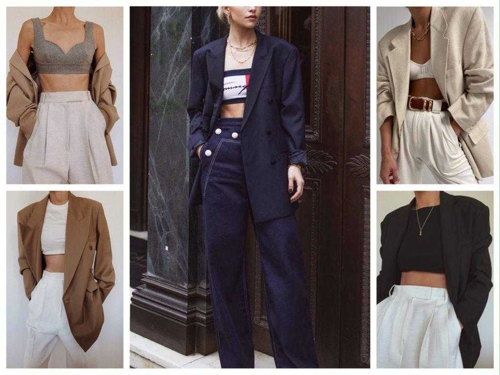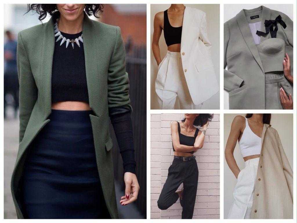 Короткий и длинный кроп-топы носят с классическими или широкими брюками. Если верх и низ однотонные, можно получить деловой образ и смело отправляться в офис или на переговоры. Яркую кофточку со штанами, надевают на прогулку или во время похода в магазин.