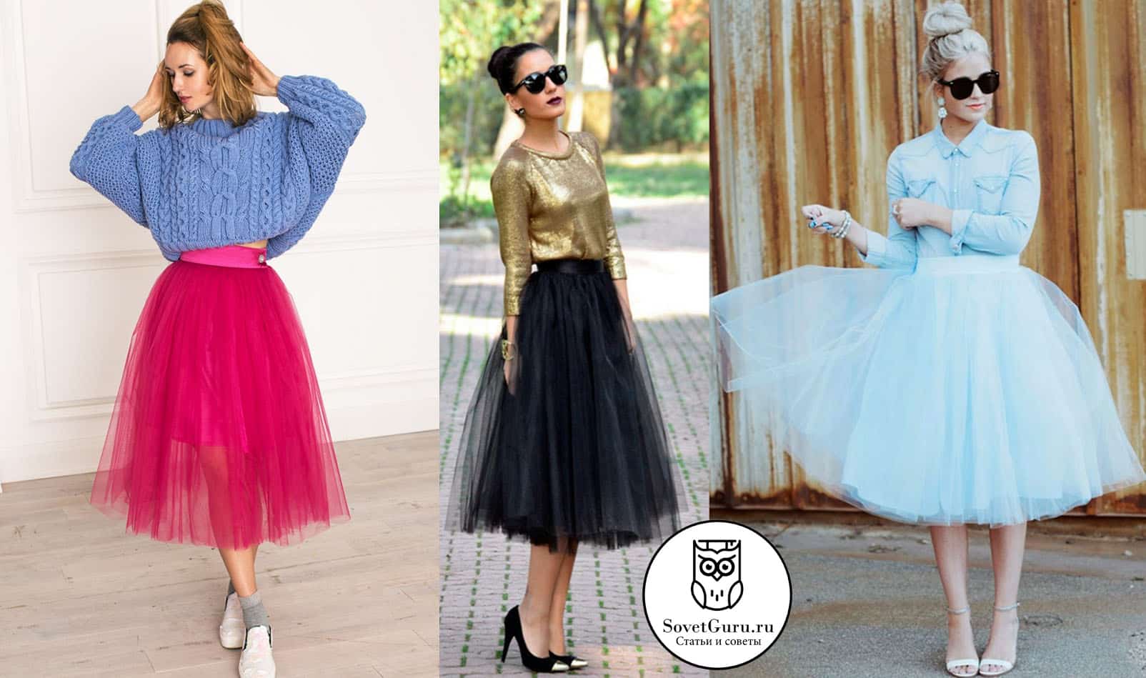 Юбку из фатина шьют различными способами. Используют сетку, ткань, соединяют различные цвета между собой. «Пачка» из основной ткани и нескольких слоев сетки — самый практичный вариант. К нему подбирают любой верх и обувь. Юбку из многочисленных слоев фатина рекомендуют для торжественных случаев и праздничных мероприятий. Многоярусную юбку — для вечеринок и тематических встреч (например, девичника).