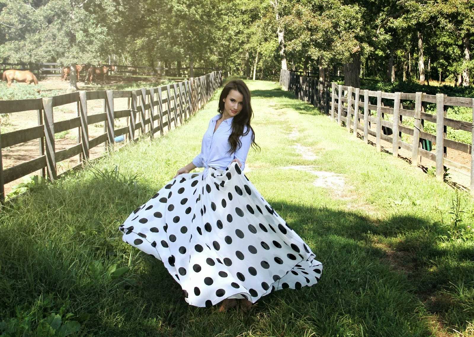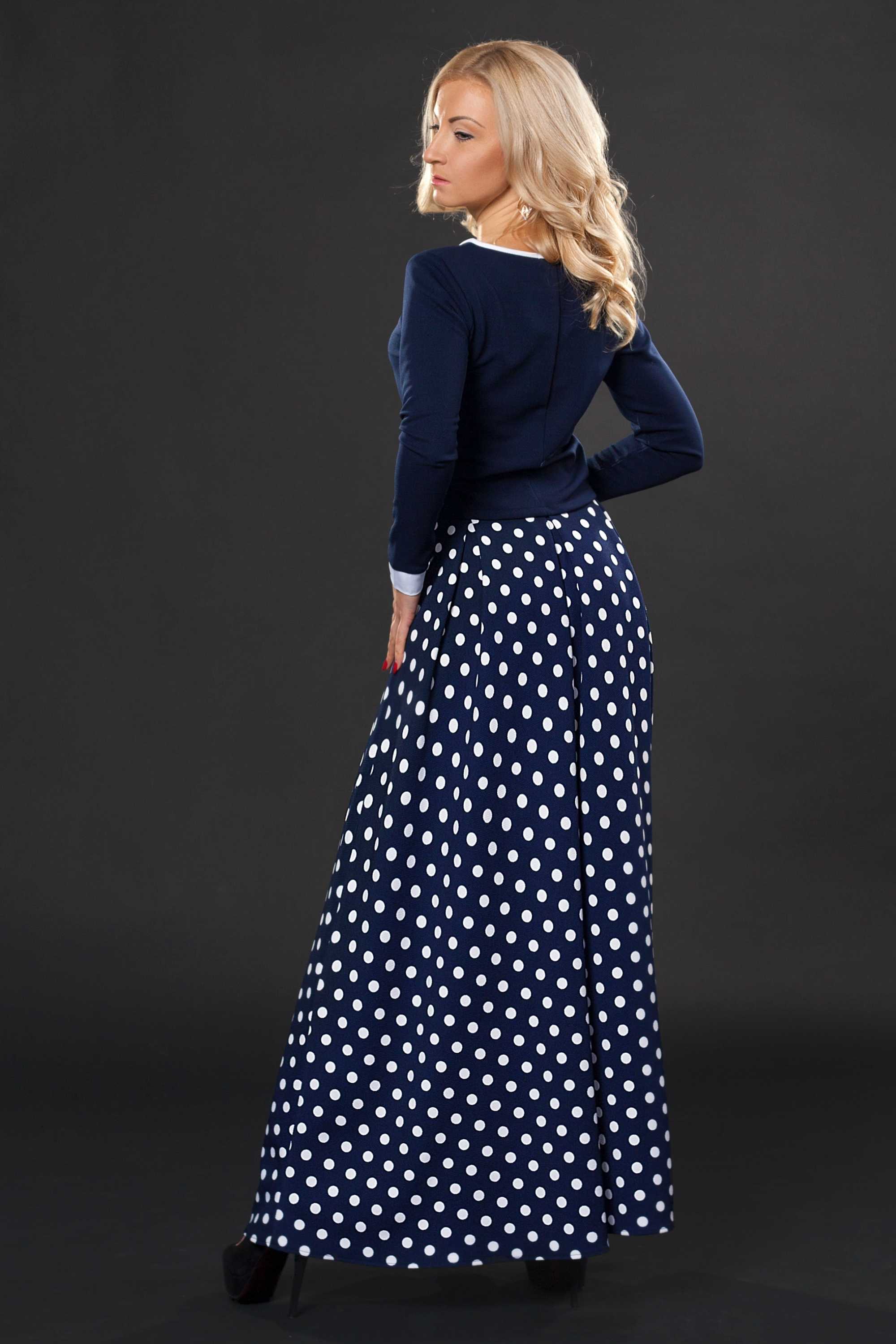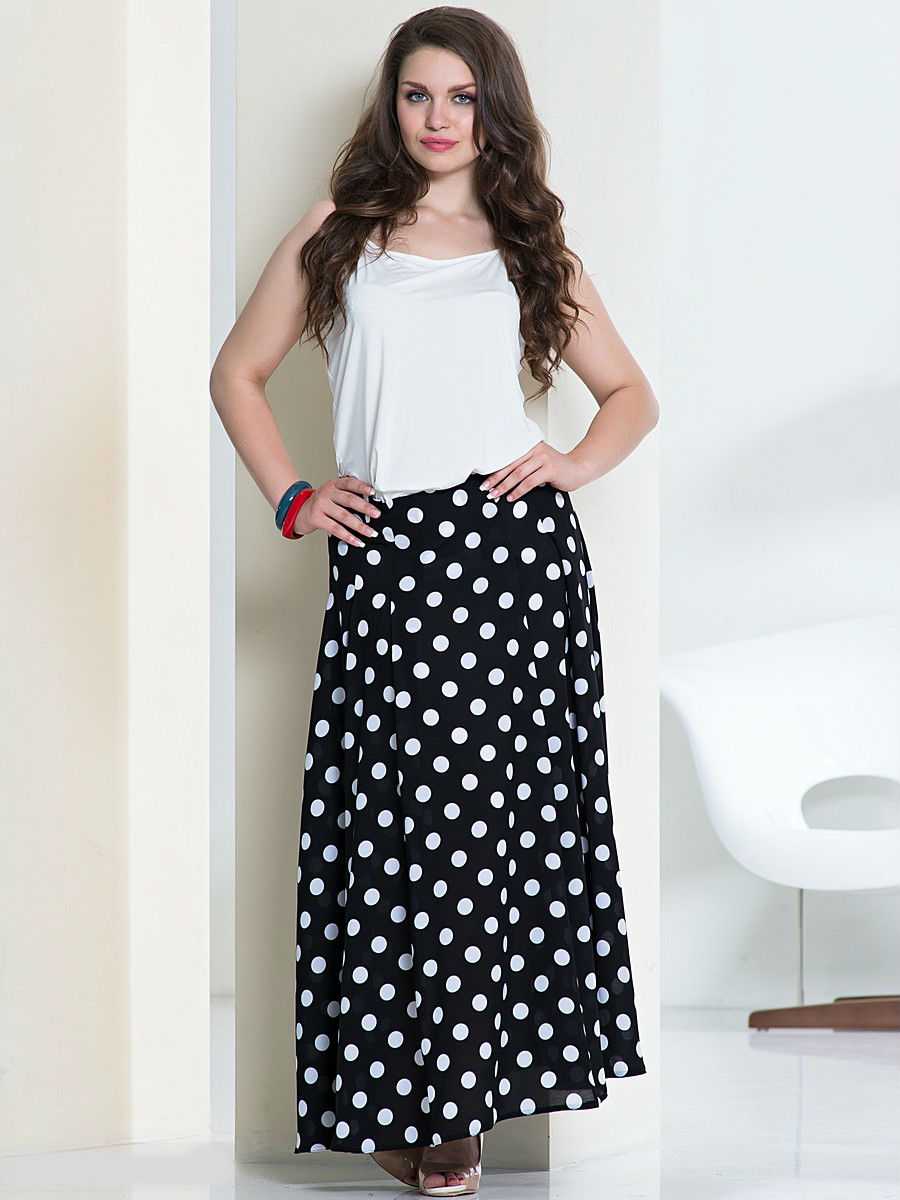 Одним из наиболее модных трендов не так давно стала длинная юбка в горошек. Фото-примеры образов с использованием такого изделия встречаются на страницах глянцевых журналов, а также весьма актуальны в коллекциях, представляемых на подиумах модных показов. Неудивительно, ведь юбка макси сохраняет загадку, подчеркивает изящность и женственность, позволяя женщине подчеркнуть свои достоинства и выглядеть непревзойденно.