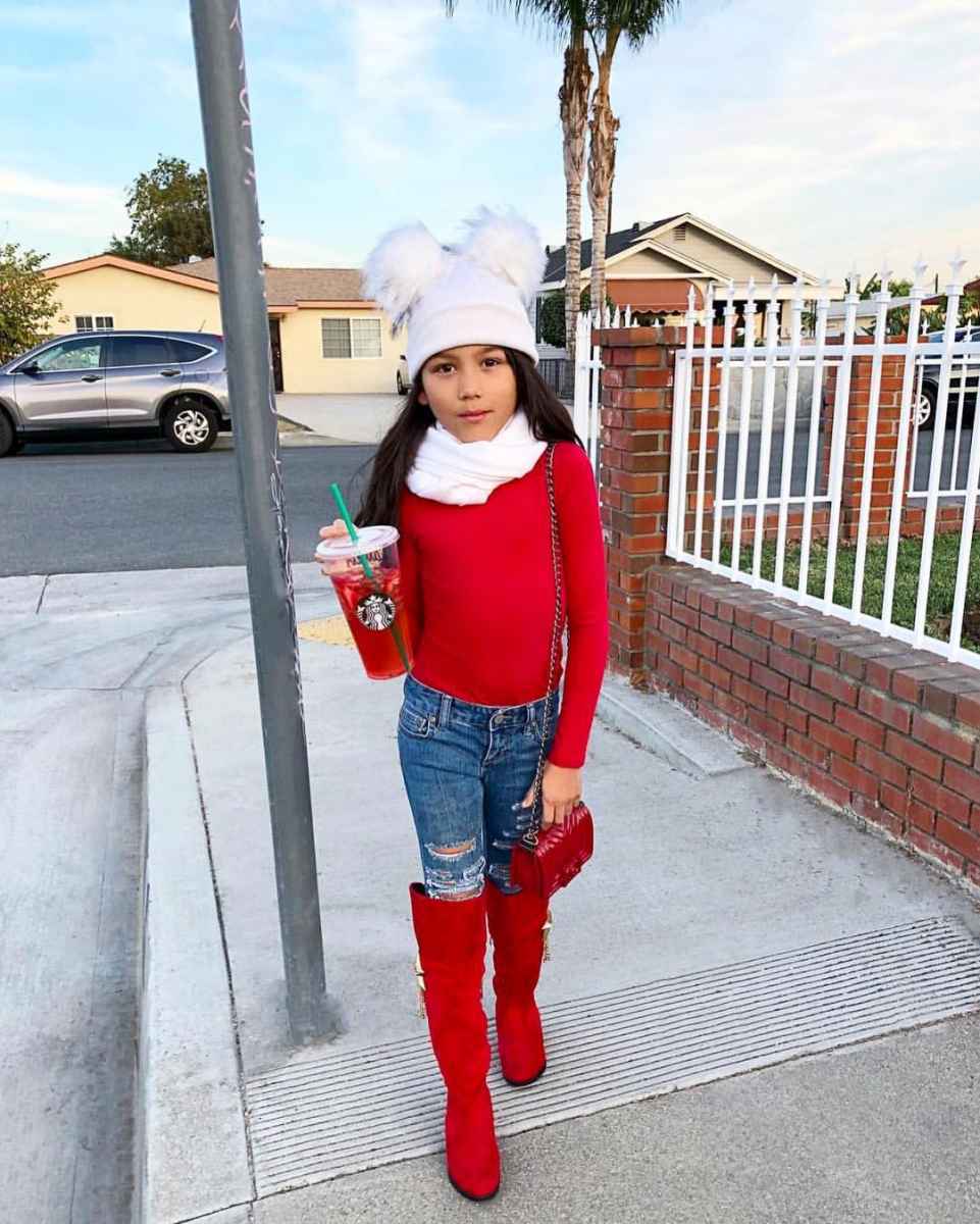 - обувь – в тренде кеды, кроссовки, сапоги, ботинки только в двух тонах – черном и белом. Остальные расцветки: фиолетовый, бордовый, синий также имеют право присутствовать в детском образе, но сочетать их с верхней одеждой будет сложнее.