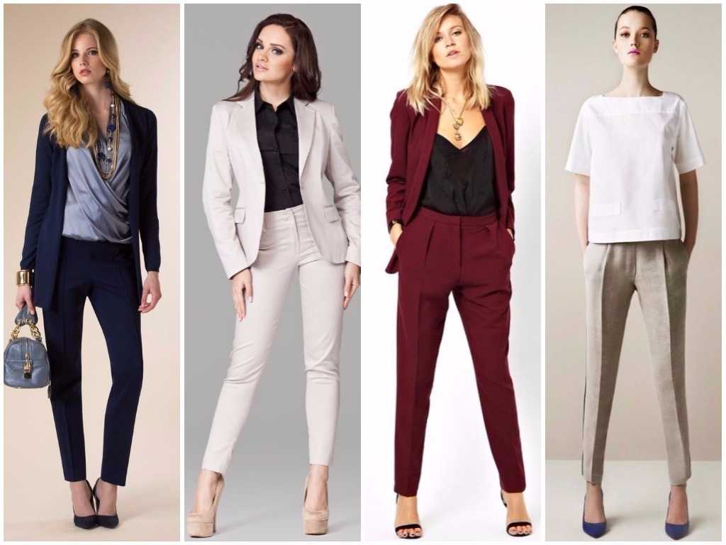 Хрупким и худеньким девушкам подходят брюки прямого кроя и приталенные жакеты.