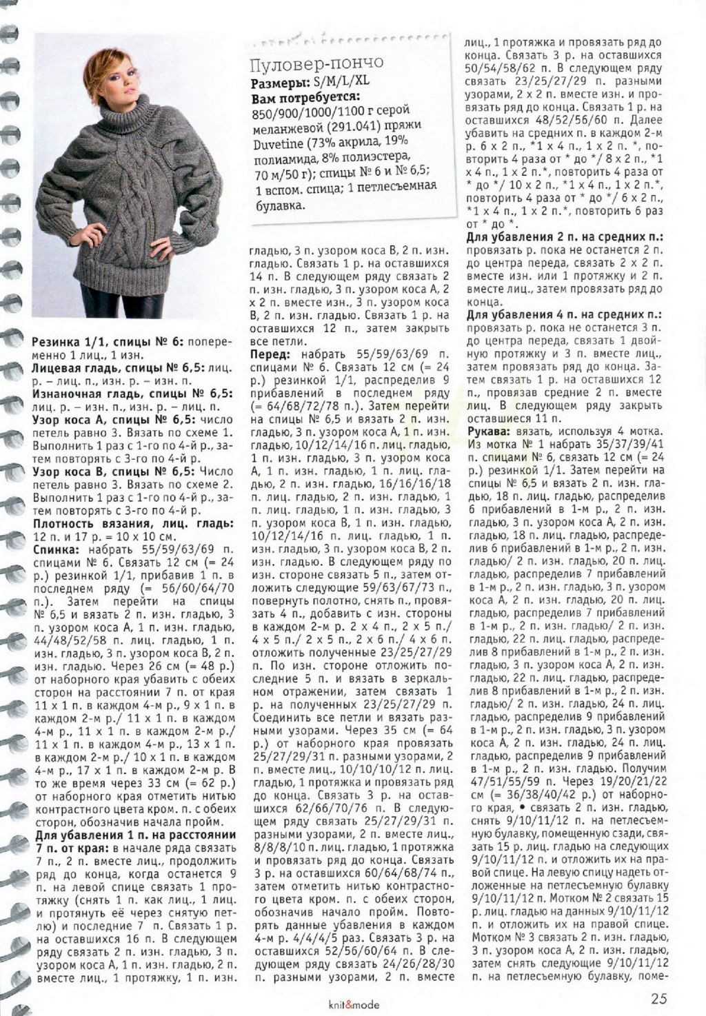 Эффект домашней вязки достигается прежде всего с помощью узора. Это специальная крупная чулочная вязка с вертикальными косами и небрежной «рыхлой» английской резинкой, созданными в процессе вязки. Но и этого недостаточно.