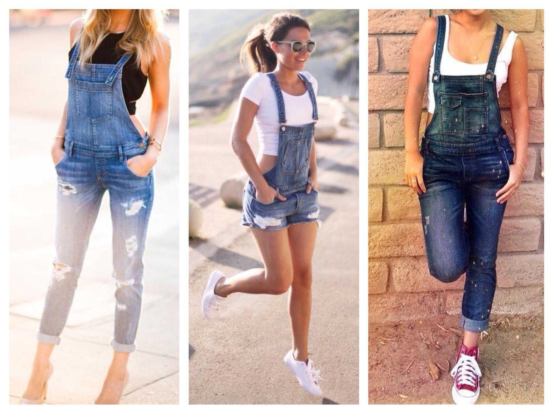 Джинсовый комбинезон, короткий или длинный, не теряет актуальности уже долгое время. Простой вариант — носить комбинезон с однотонной футболкой и спортивной обувью
