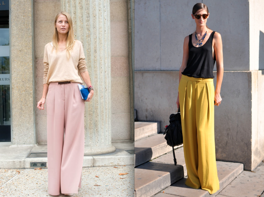 - Чем шире штанины, тем они длиннее. А клеш и палаццо должны полностью закрывать обувь. Узкие брюки напротив должны быть более скромной длины.