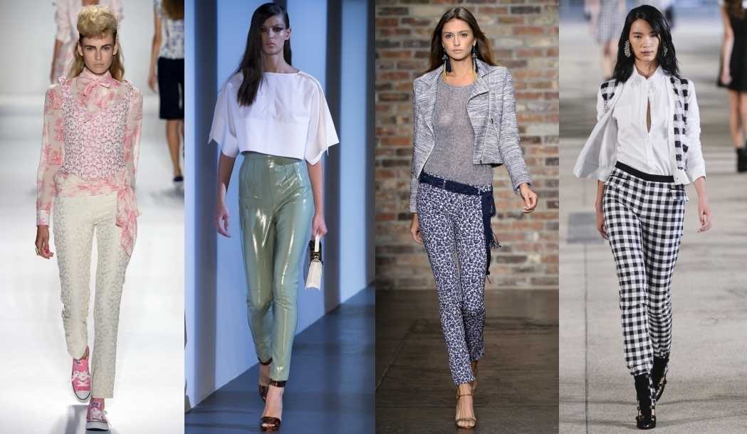 - Трикотажные укороченные брюки . Модным трендом в этом сезоне стали фасоны с длиной штанин 7/8 и 3/4. Такая одежда прекрасно подходит для жаркого сезона и визуально удлиняет рост, делает фигуру стройнее.