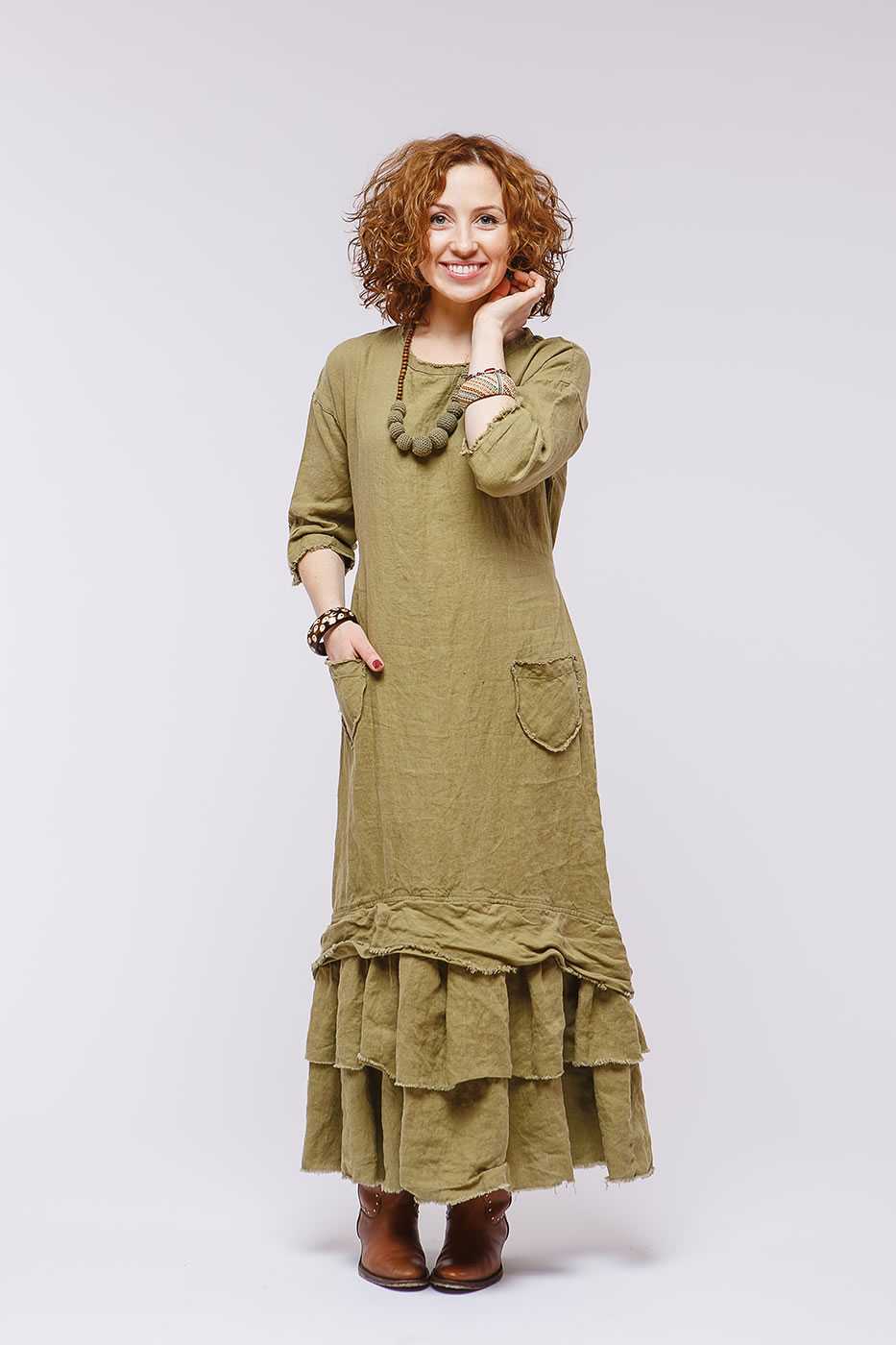 Льняные платья в стиле бохо чаще всего украшены воланами и рюшами на рукавах и подолу изделия. В моде платья А-силуэта, платье-рубашка, длинные сарафаны. Такие модели редко окрашиваются, предпочтительнее использовать натуральный материал в кремовом и пастельных тонах.