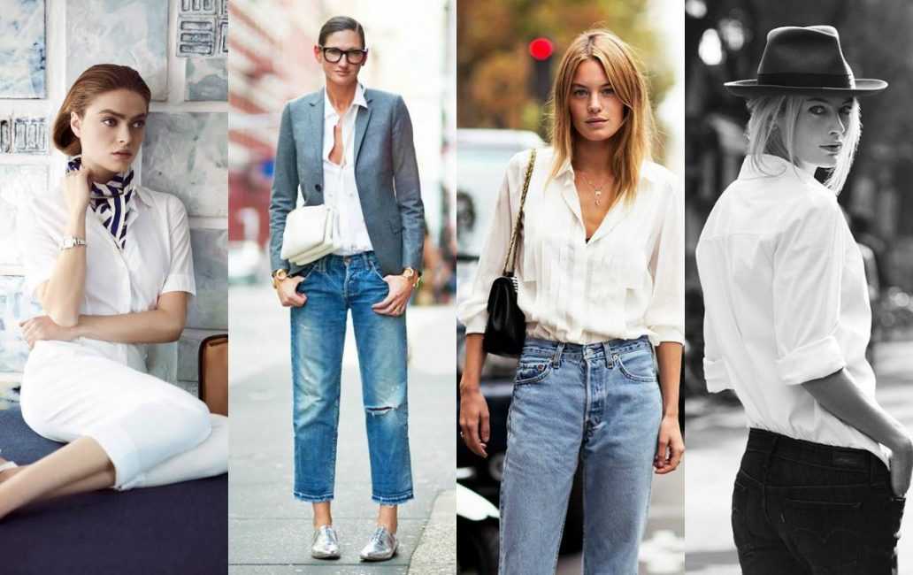 Белая рубашка многолика, потому что хоть и пошита на мужской манер, но может стать вечерним вариантом в сочетании с украшениями и аксессуарами. Разберемся какие ткани и крои стоит выбирать под тот или иной низ.