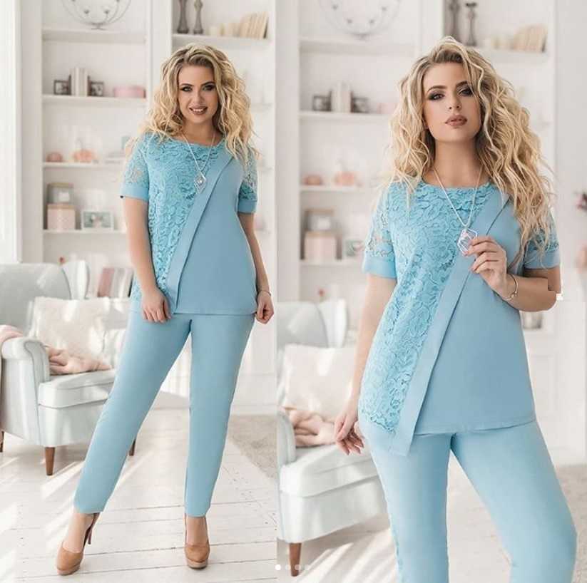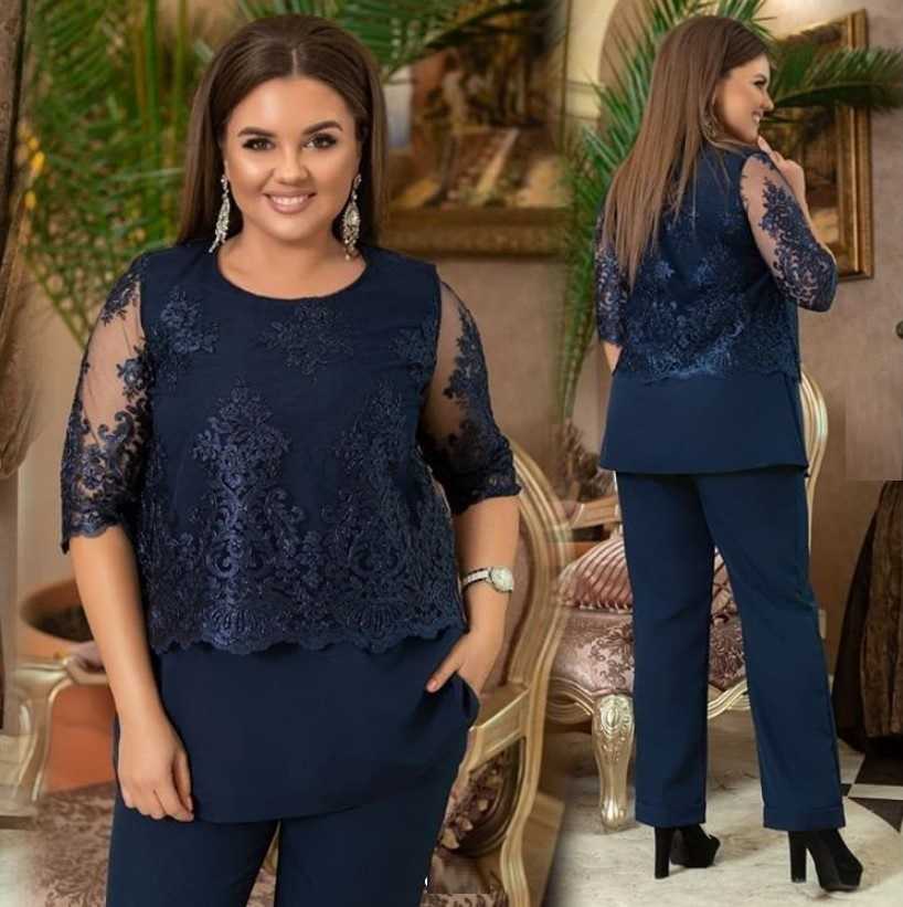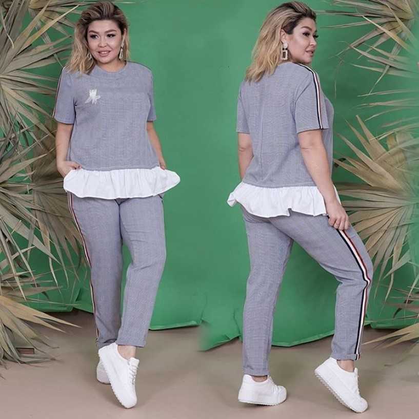 Костюмы для женщин в теле варьируются по назначению и сезонности. Летние модели выполняются из шифона, вискозы, хлопка. Приятным к телу, но не слишком практичным считается лен. Комплекты из льна станут незаменимыми в летнем гардеробе. На межсезонье и зиму выбирают изделия из плотной ткани. Теплые шерстяные и полушерстяные костюмы выручат в повседневной жизни. На деловые переговоры стоит отправиться в «двойке» из костюмной ткани. В быту окажутся уместны флисовые и велюровые комплекты.