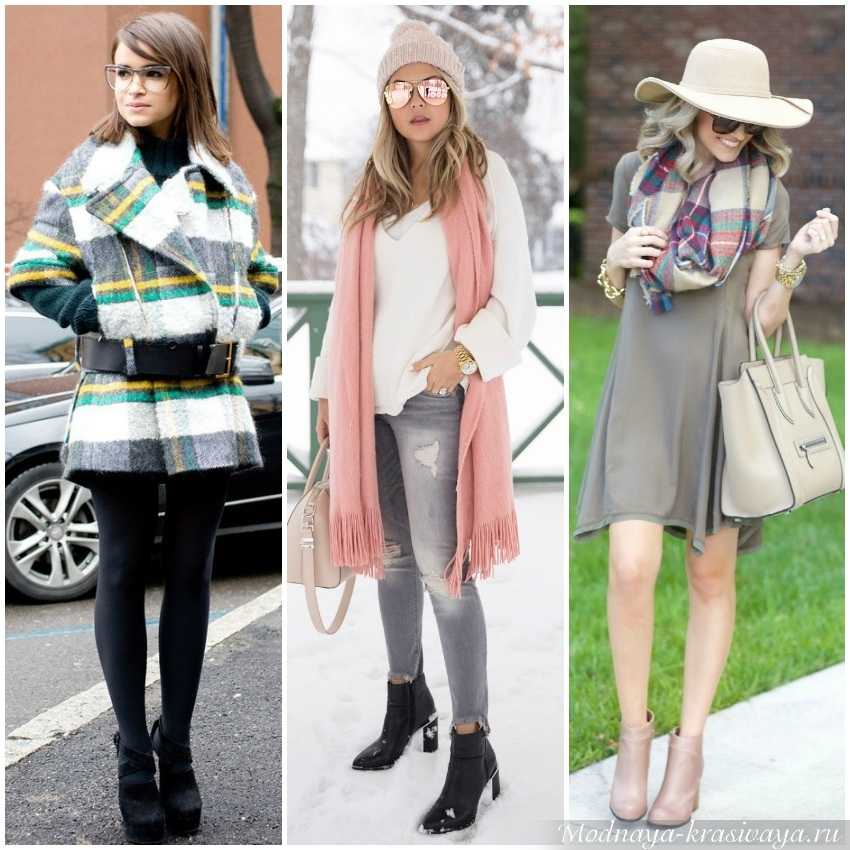 Тёмные оттенки визуально делают фигуру стройнее. Разбавить тёмные цвета можно посредством ярко-белого шарфа.
