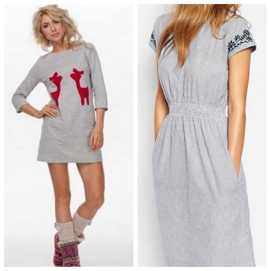 В зимний сезон подойдут теплые платья с начесом или из плотных тканей, летом — легкие сарафаны в полоску, клетку или с принтами.