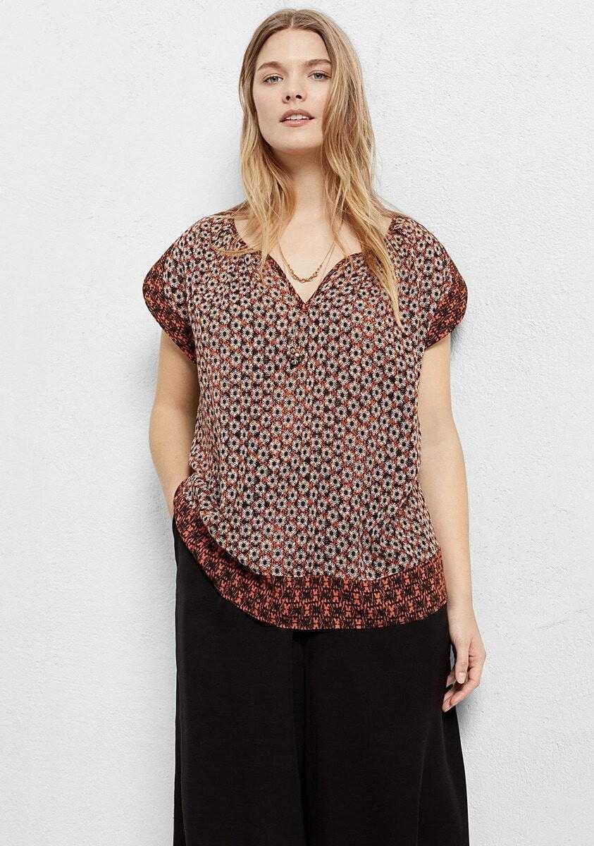 В случае отсутствия опыта, можно купить блузку с отдельными декоративными элементами. Принты могут украшать воланы, карманы, рукава. С выбором такой одежды ошибиться сложно, небольшие участки вряд ли добавят ненужный объем.