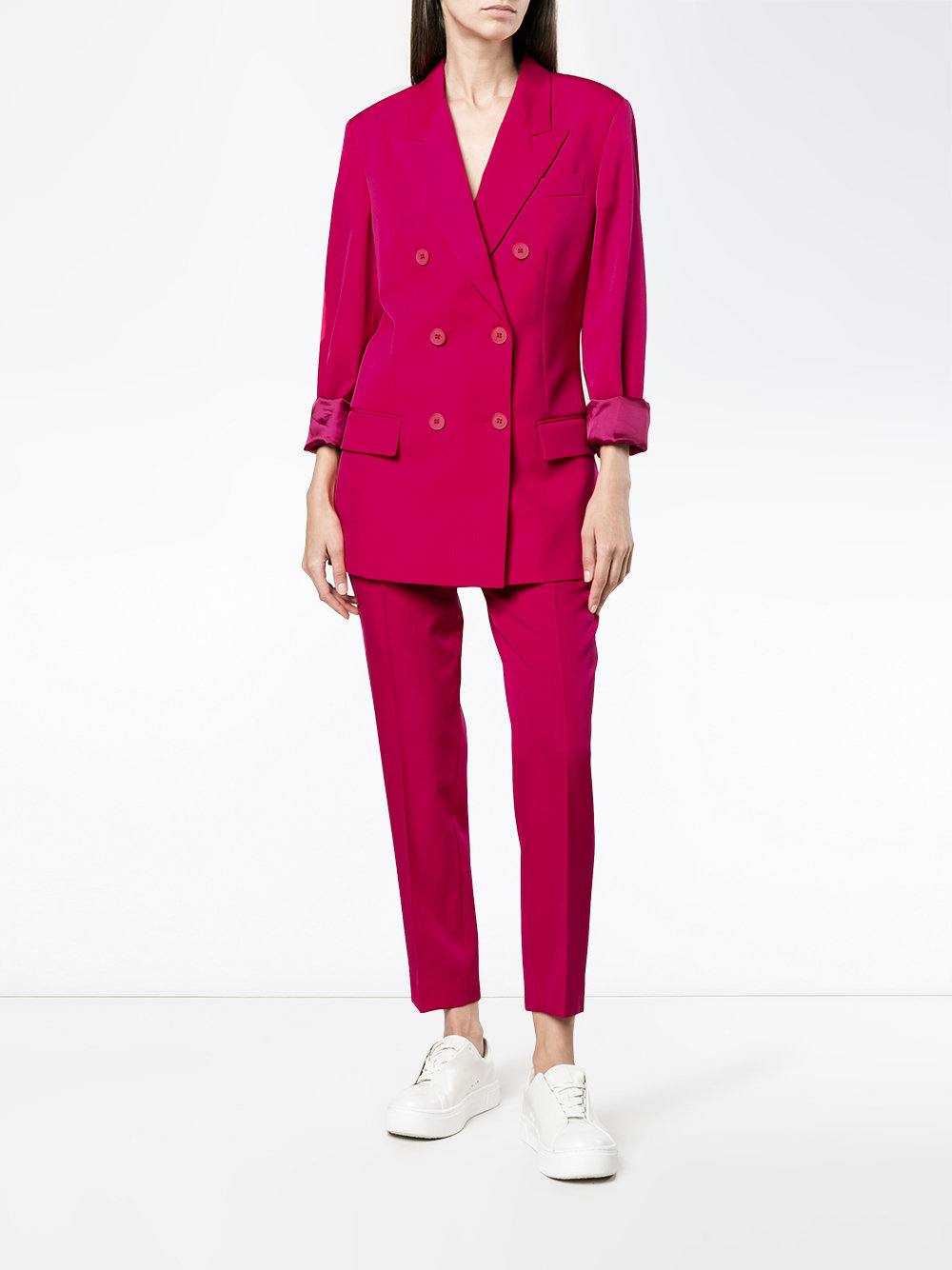 Некая тождественность с мужским стилем указывает на уверенный и сильный характер своей обладательницы. Так что для успешных леди наличие такого комплекта в арсенале является аксиомой.