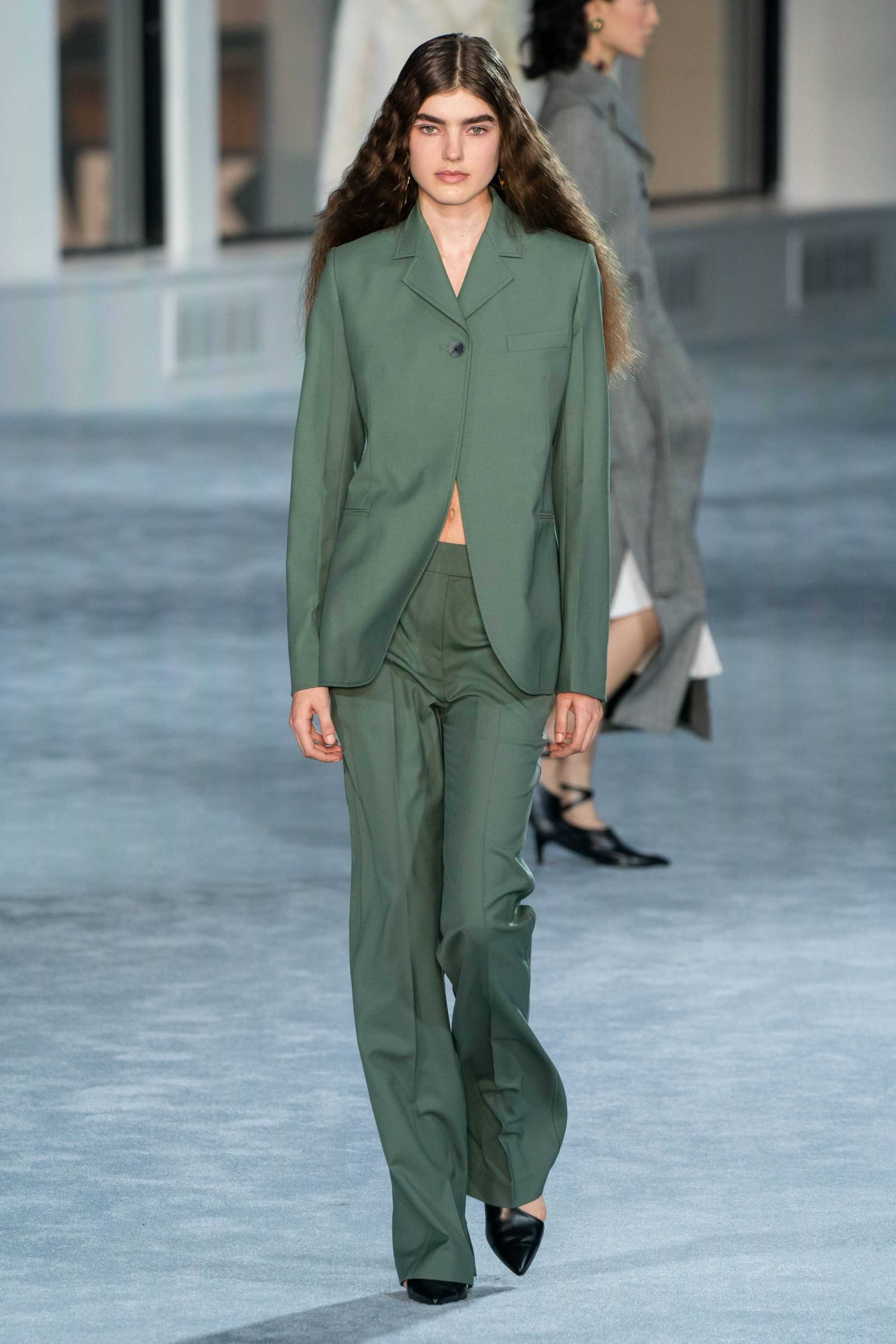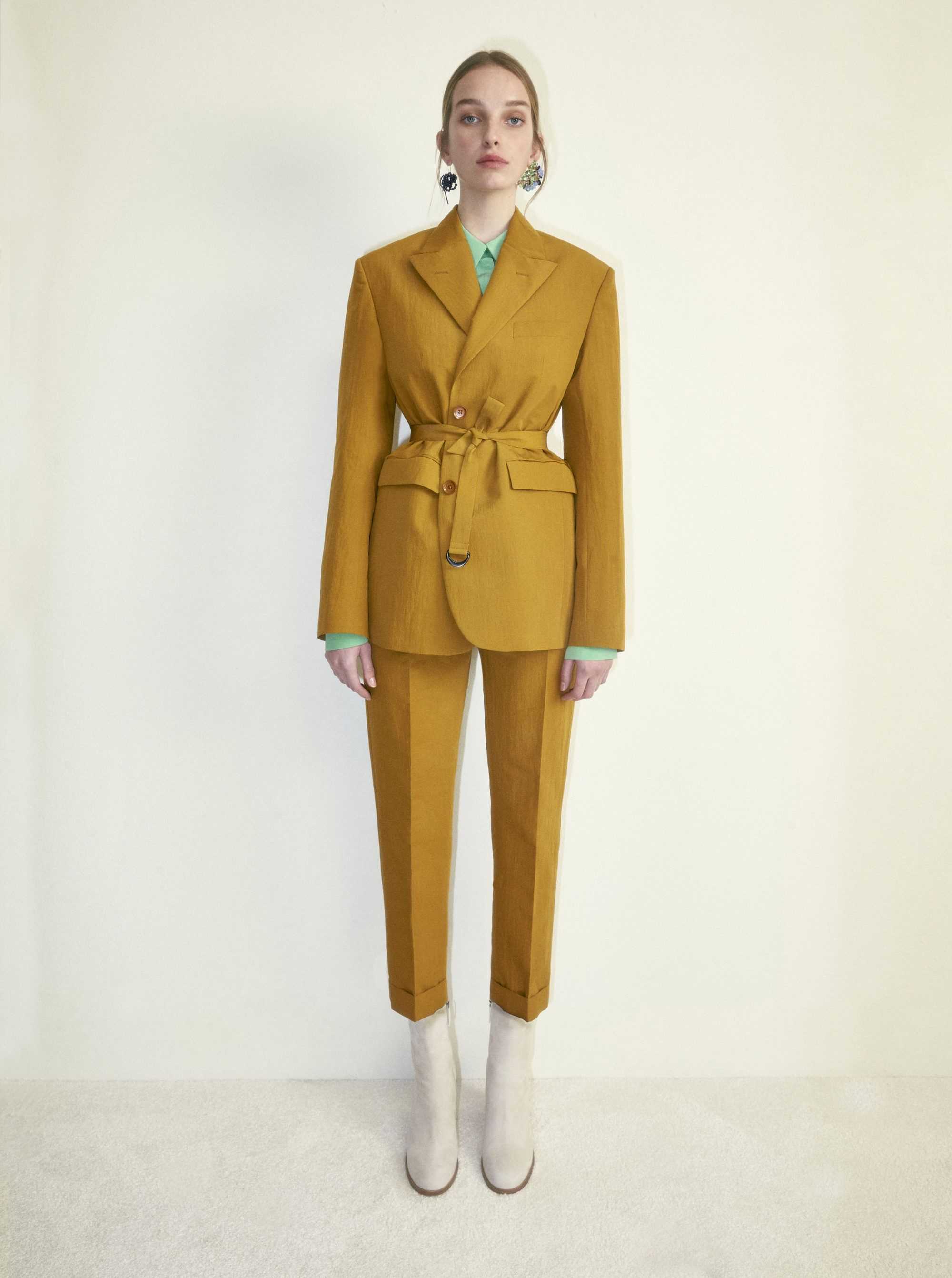 С этим можно играть в оверсайз формате, опять же. Что касается длины пиджака, то в деловом комплекте никаких приталенных укороченных или асимметричных силуэтов — классика и еще раз классика, как типичный мужской и слегка приталенный пиджак.